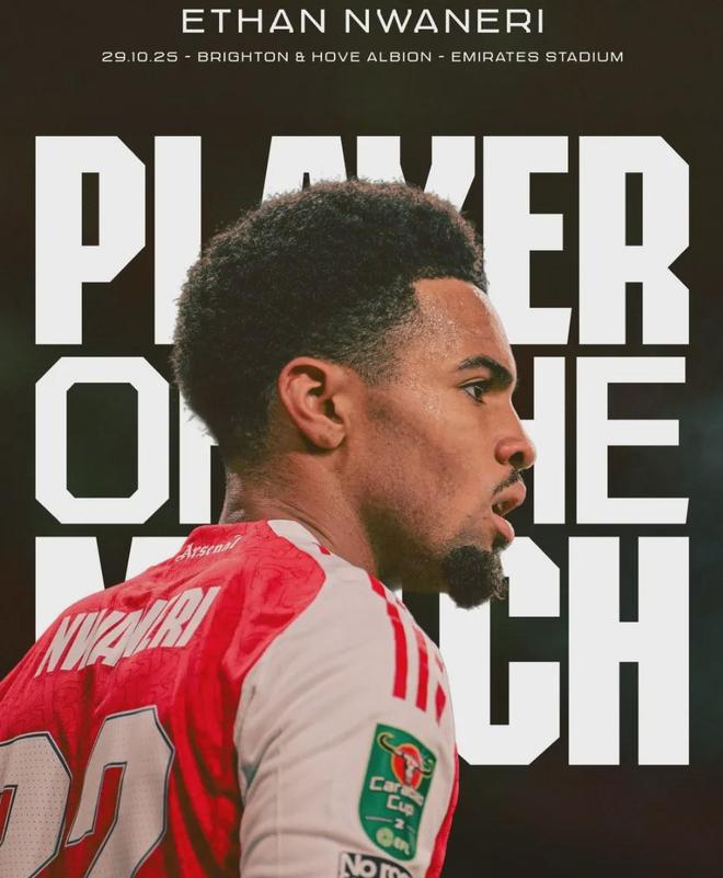恩瓦内里被阿森纳官方评选为了本场比赛最佳球员!